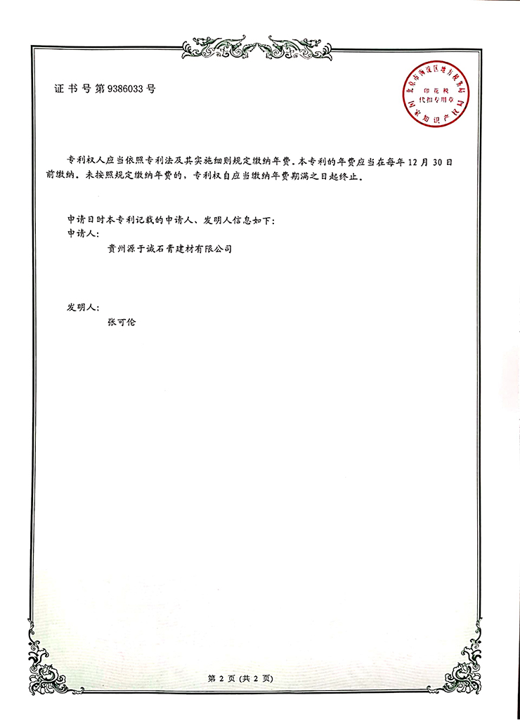 專(zhuān)利證書(shū)(一種石膏板側(cè)壁紙面粘結(jié)裝置)